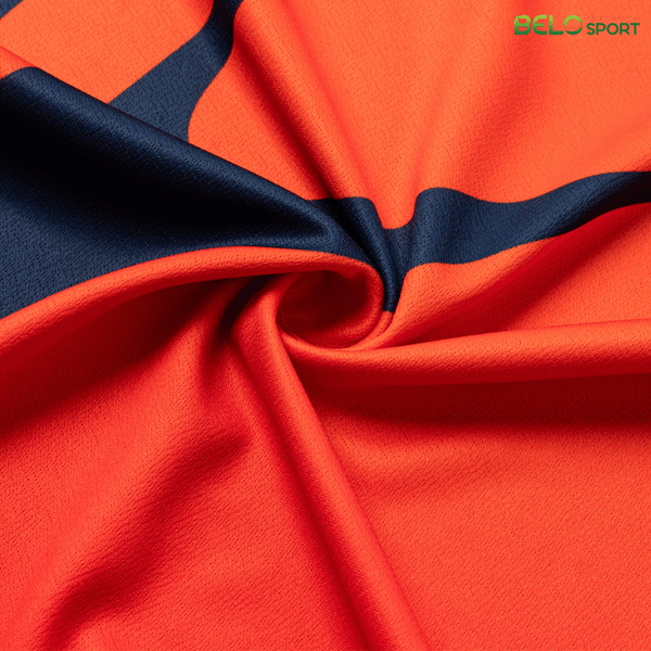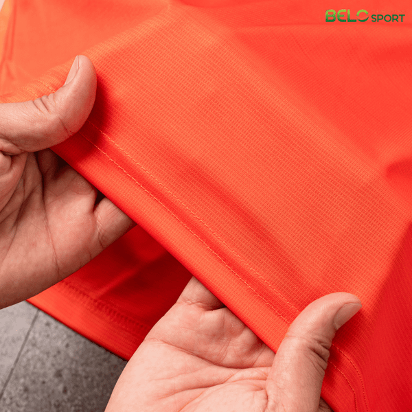Sử dụng vải mè Nhật Bản được dệt họa tiết chìm, tạo cảm giác mịn, nhẹ và cực kỳ thoáng khí. Vải có khả năng co giãn 4 chiều, giúp vận động viên di chuyển linh hoạt, không gò bó.