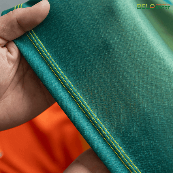 Sử dụng vải mè Nhật Bản được dệt họa tiết chìm, tạo cảm giác mịn, nhẹ và cực kỳ thoáng khí. Vải có khả năng co giãn 4 chiều, giúp vận động viên di chuyển linh hoạt, không gò bó.