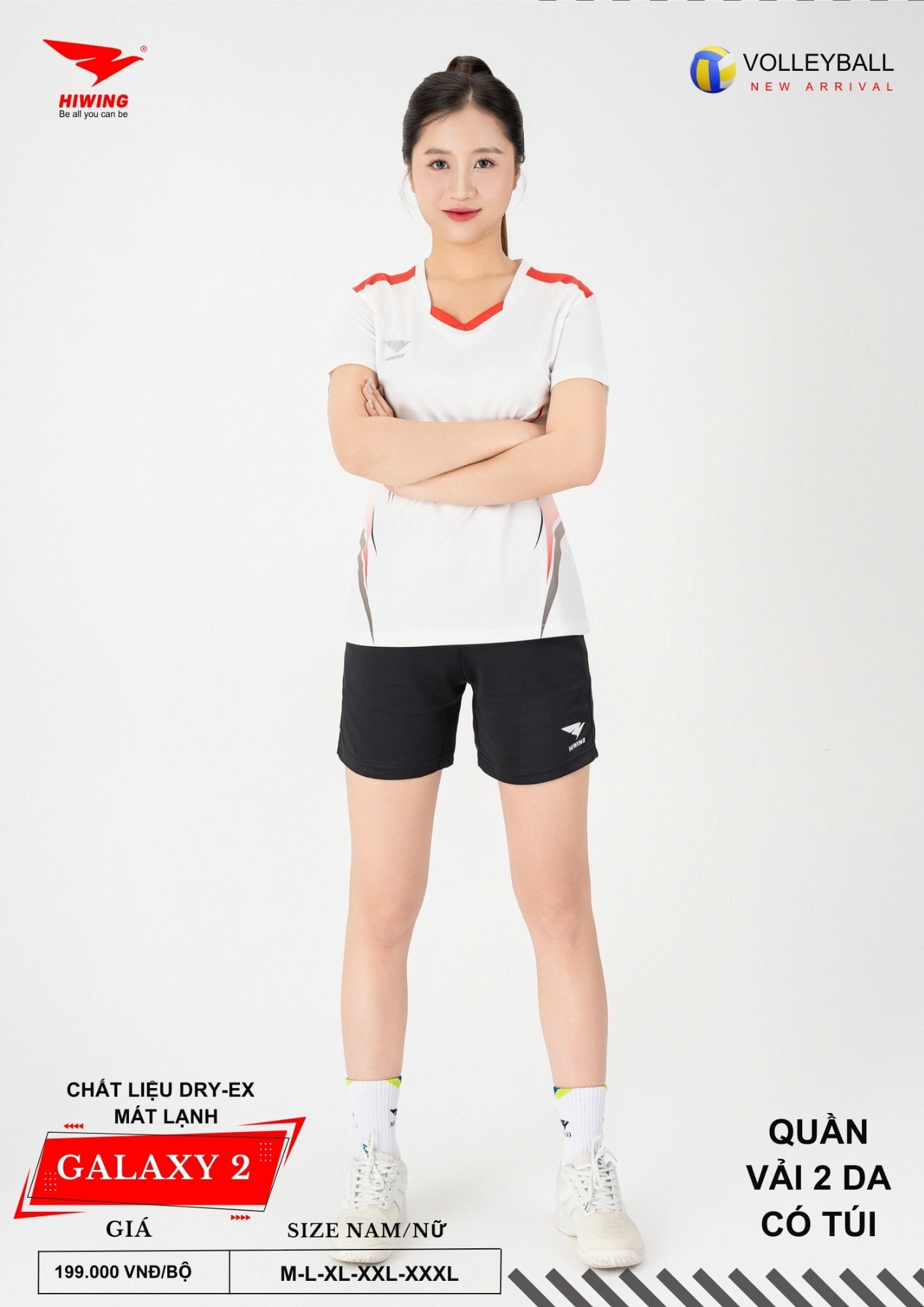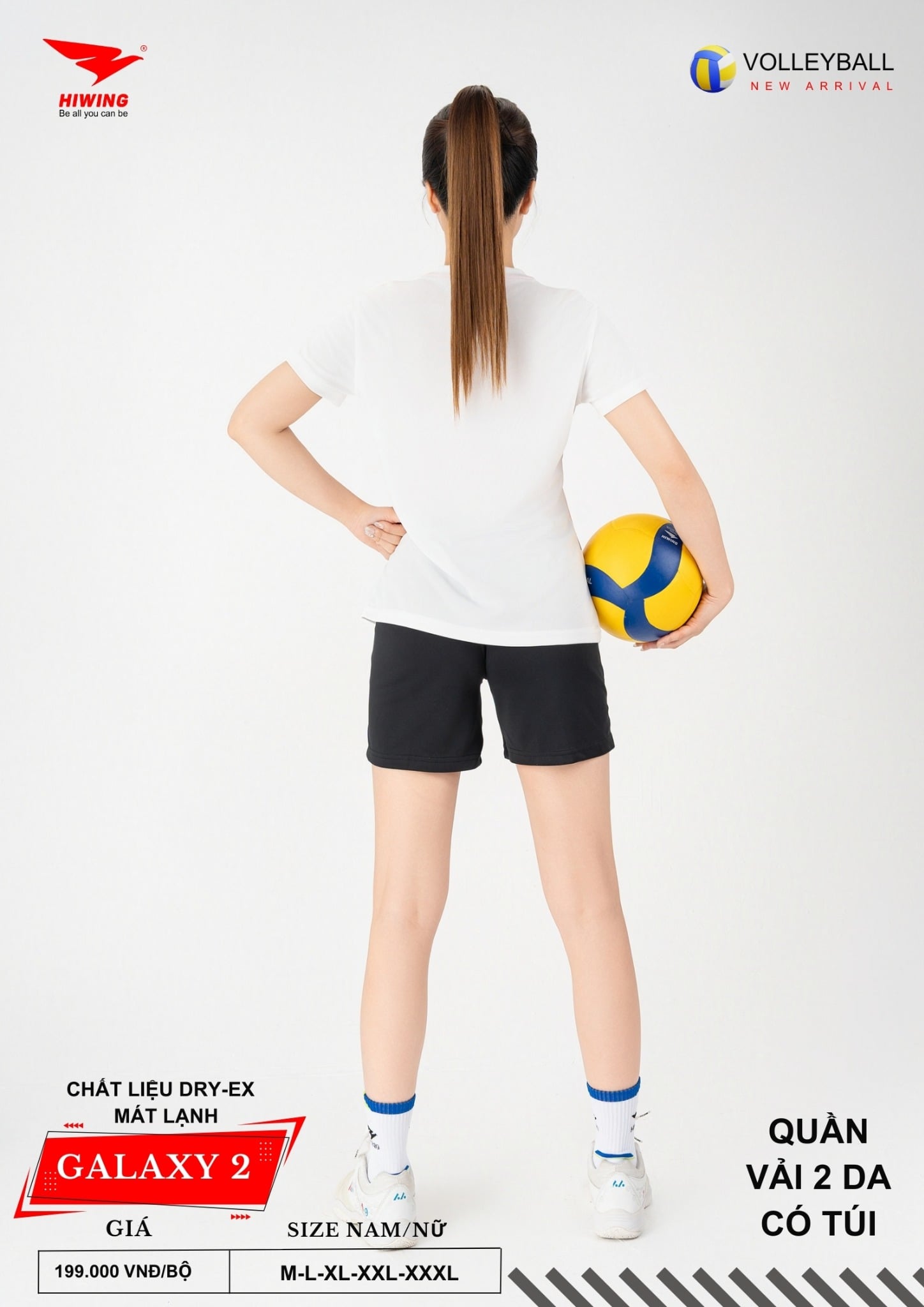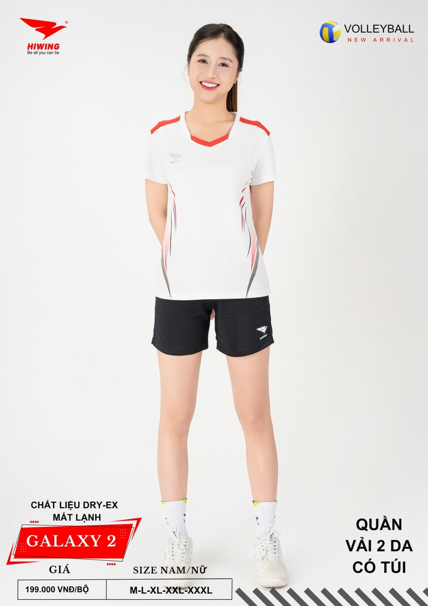Hiwing Galaxy 2 được nghiên cứu form dáng theo chuẩn vận động viên bóng chuyền, giúp người mặc di chuyển linh hoạt – bật nhảy thoải mái – thi đấu tự tin.