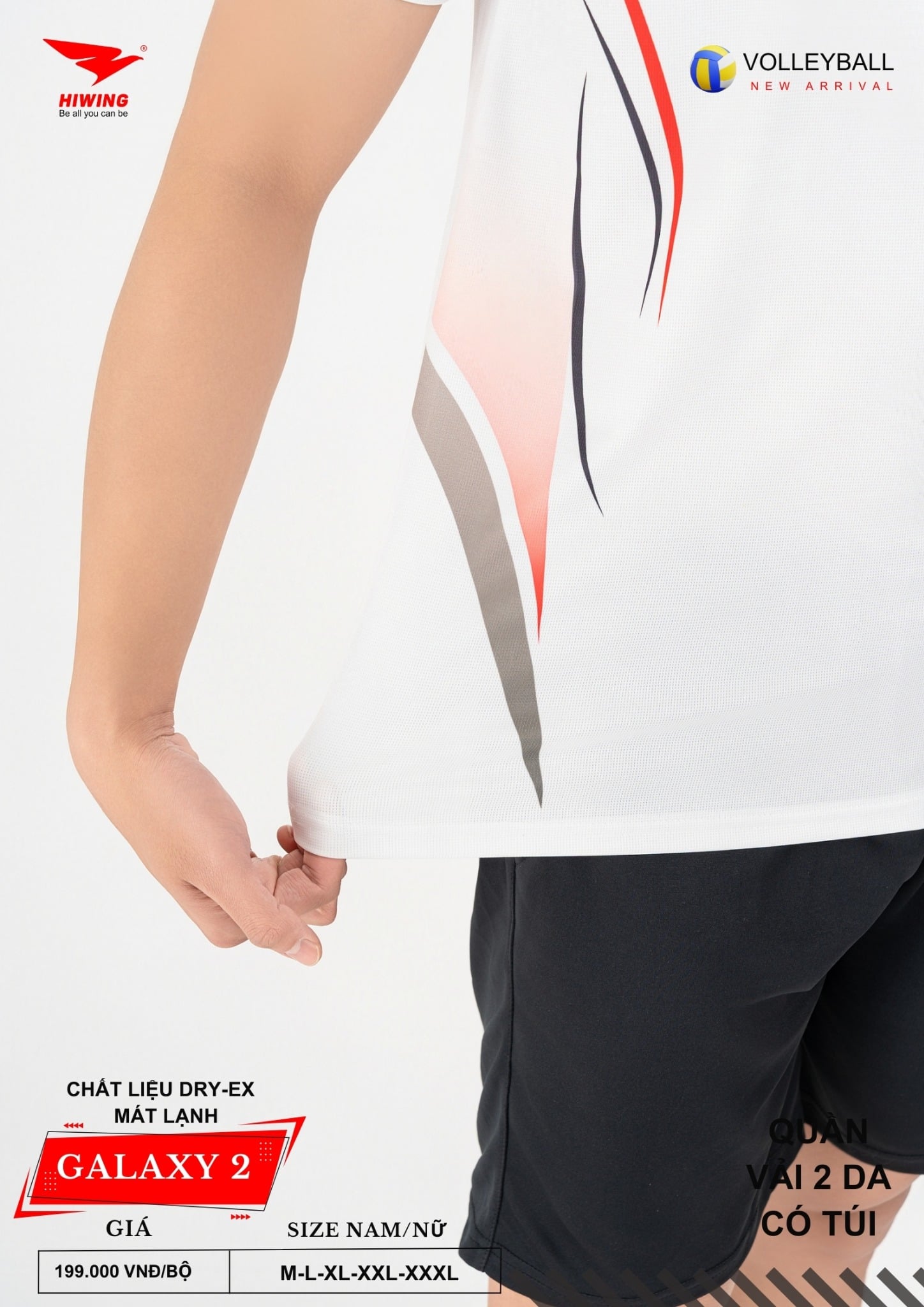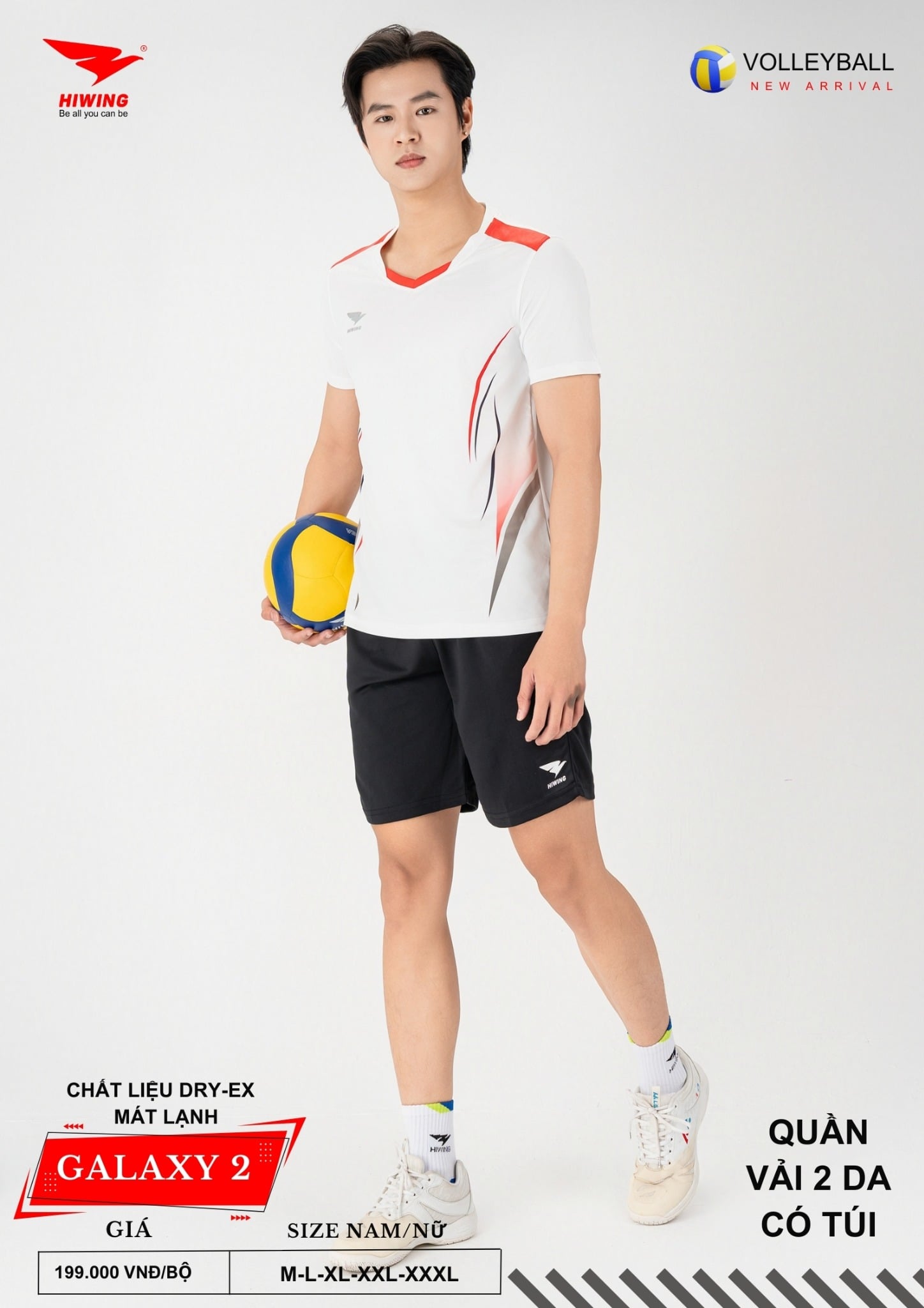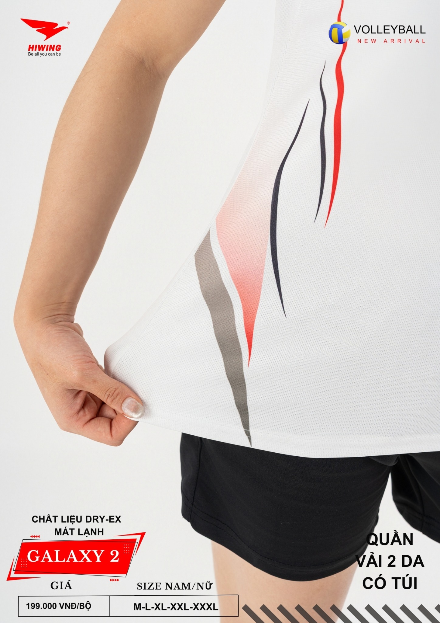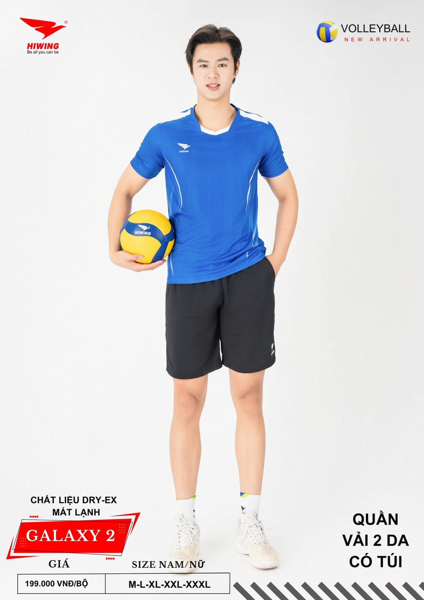 Bộ quần áo bóng chuyền Hiwing Galaxy 2 là dòng sản phẩm mới nhất đến từ thương hiệu Hiwing, được thiết kế dành riêng cho thi đấu và tập luyện chuyên nghiệp. Sở hữu form chuẩn nam – nữ, chất liệu Dry-Ex cao cấp cùng mức giá chỉ 199.000 VNĐ/bộ, Galaxy 2 là lựa chọn lý tưởng cho các đội bóng chuyền phong trào, câu lạc bộ và đồng phục thi đấu.