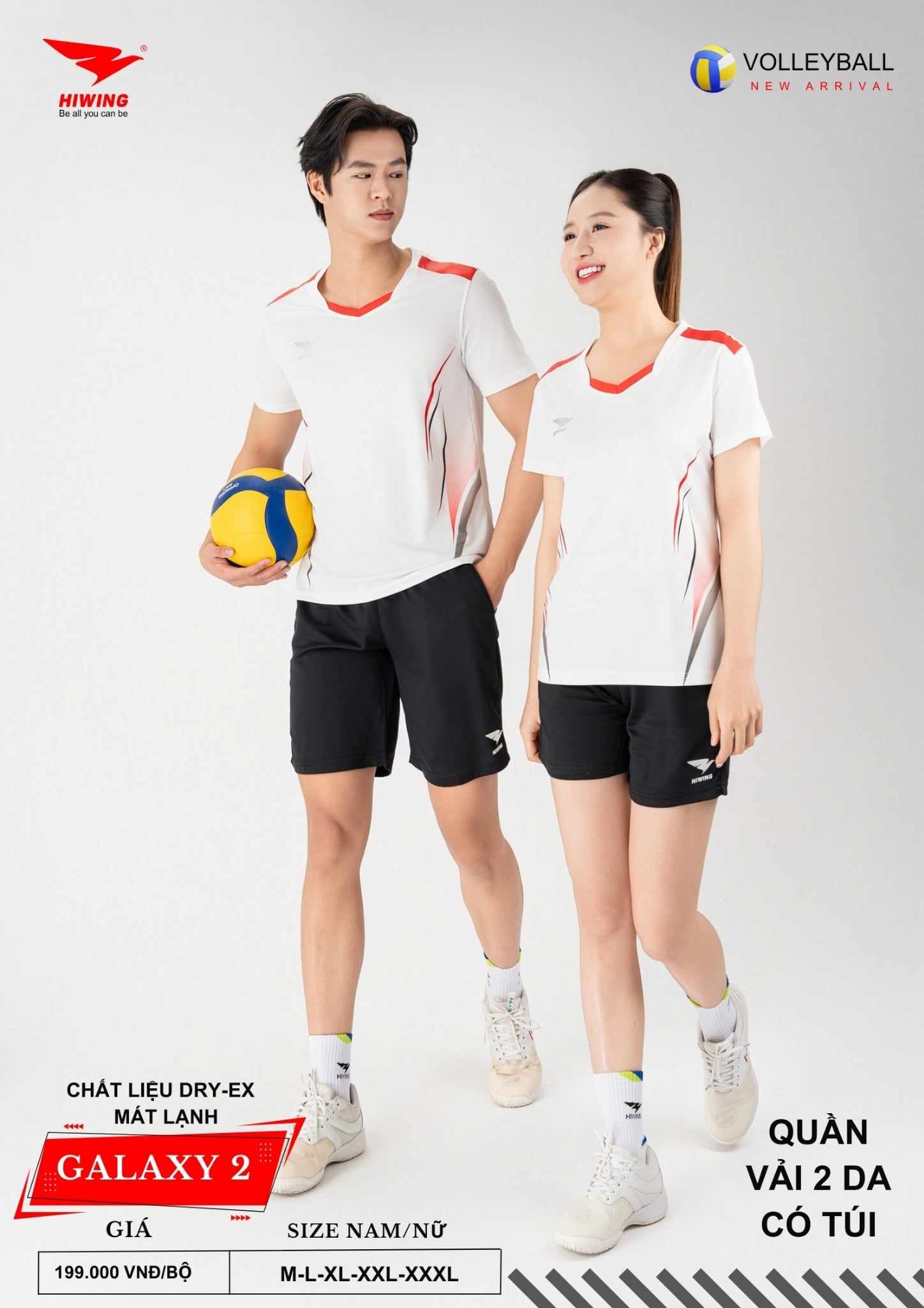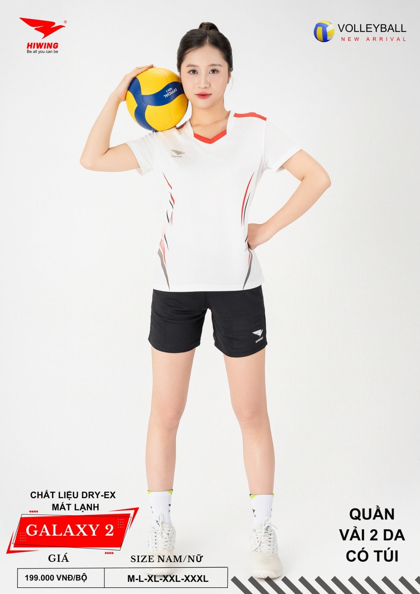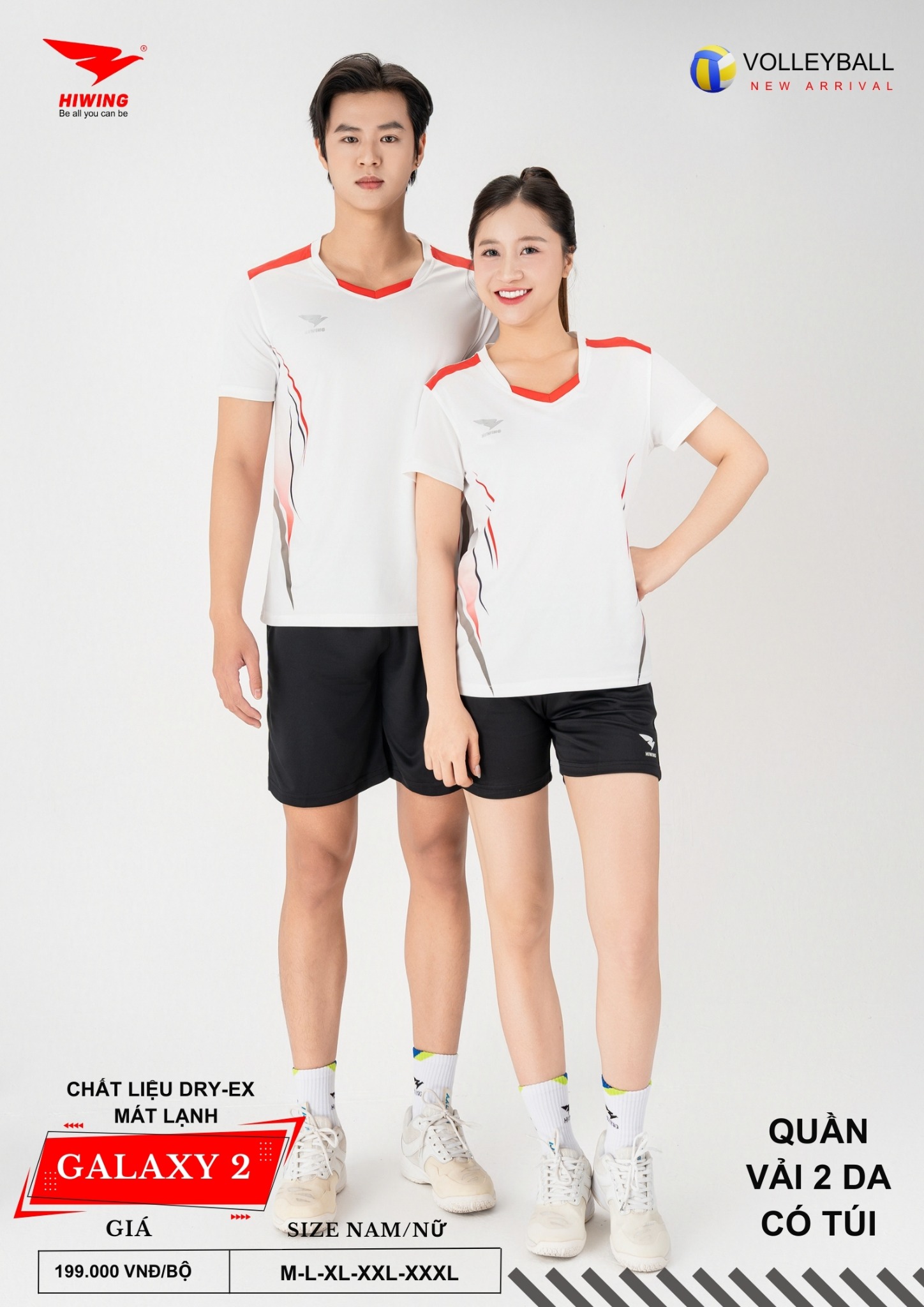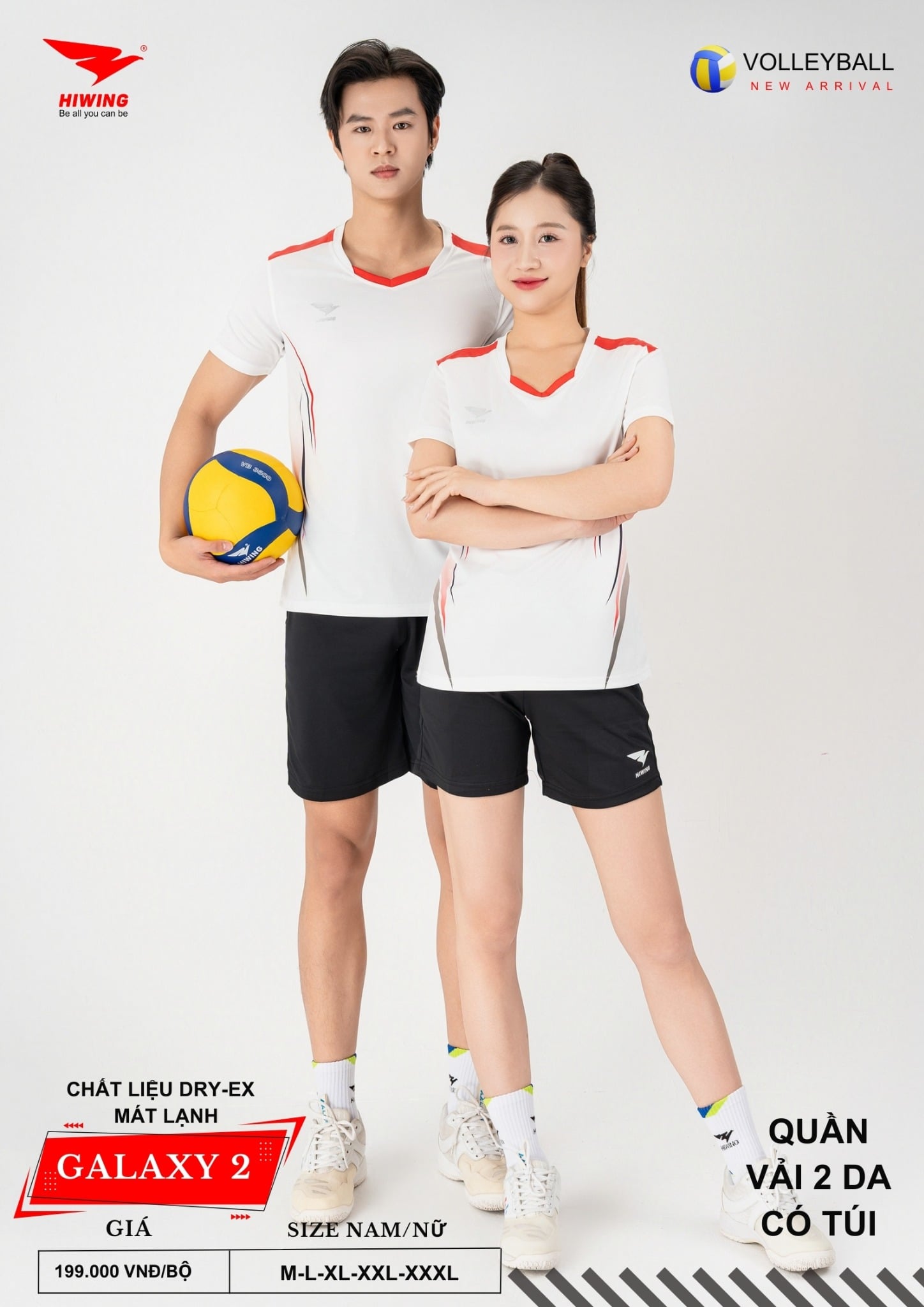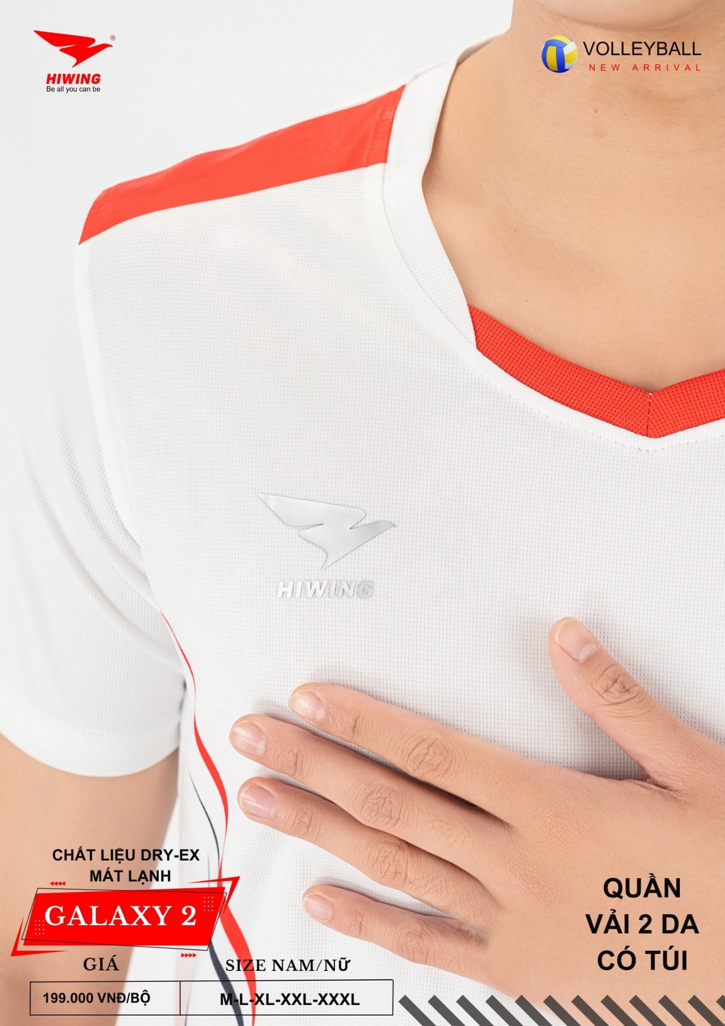 Bộ quần áo bóng chuyền Hiwing Galaxy 2 là dòng sản phẩm mới nhất đến từ thương hiệu Hiwing, được thiết kế dành riêng cho thi đấu và tập luyện chuyên nghiệp. Sở hữu form chuẩn nam – nữ, chất liệu Dry-Ex cao cấp cùng mức giá chỉ 199.000 VNĐ/bộ, Galaxy 2 là lựa chọn lý tưởng cho các đội bóng chuyền phong trào, câu lạc bộ và đồng phục thi đấu.