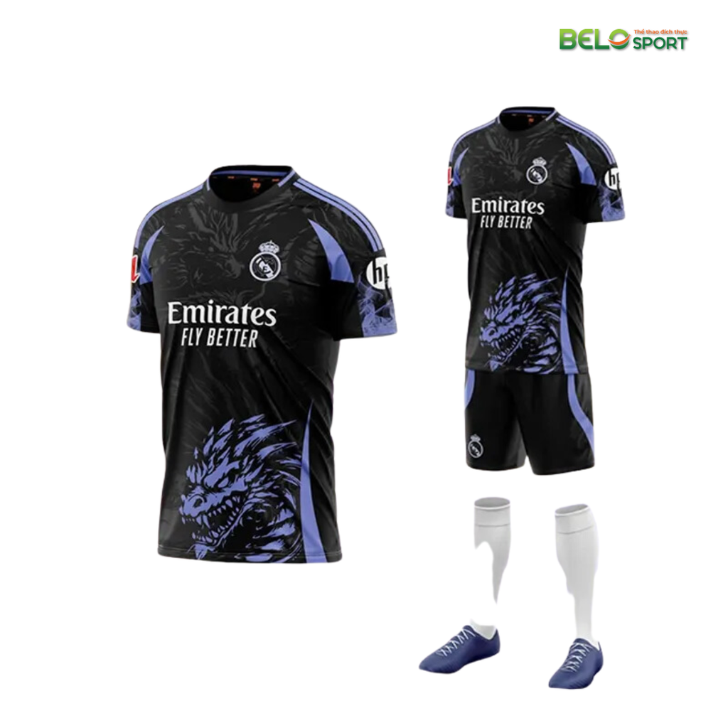 Áo Bóng Đá Câu Lạc Bộ Real Madrid Đen Rồng Viền Tím 2024-2025