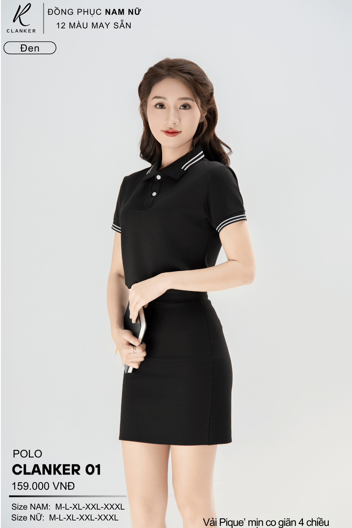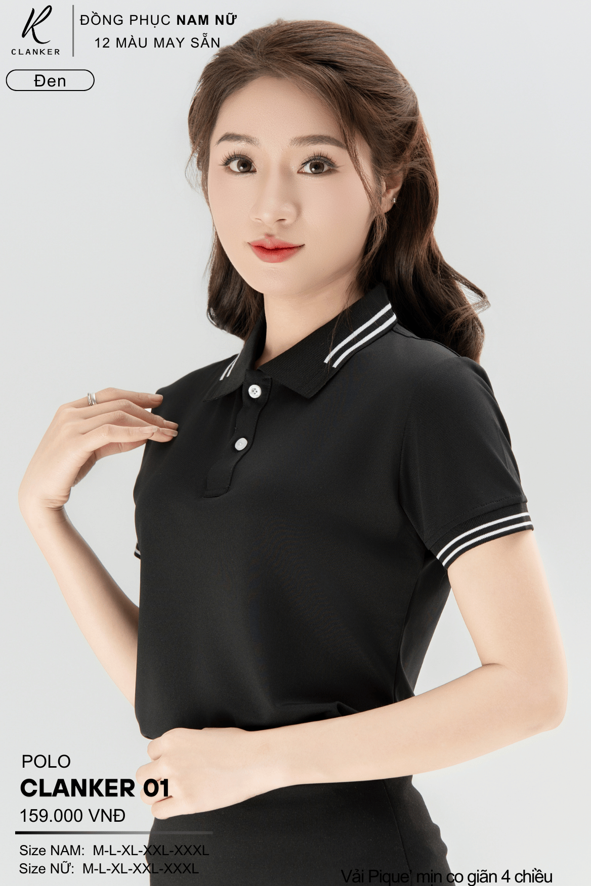 Áo Polo Thể Thao CLANKER 01 Nam , Nữ Màu Đen Vải Cá Sấu Thể Thao Mịn Co Dãn 4 Chiều Phủ Nano Kháng Khuẩn KHUYẾN MÃI - ƯU ĐÃI