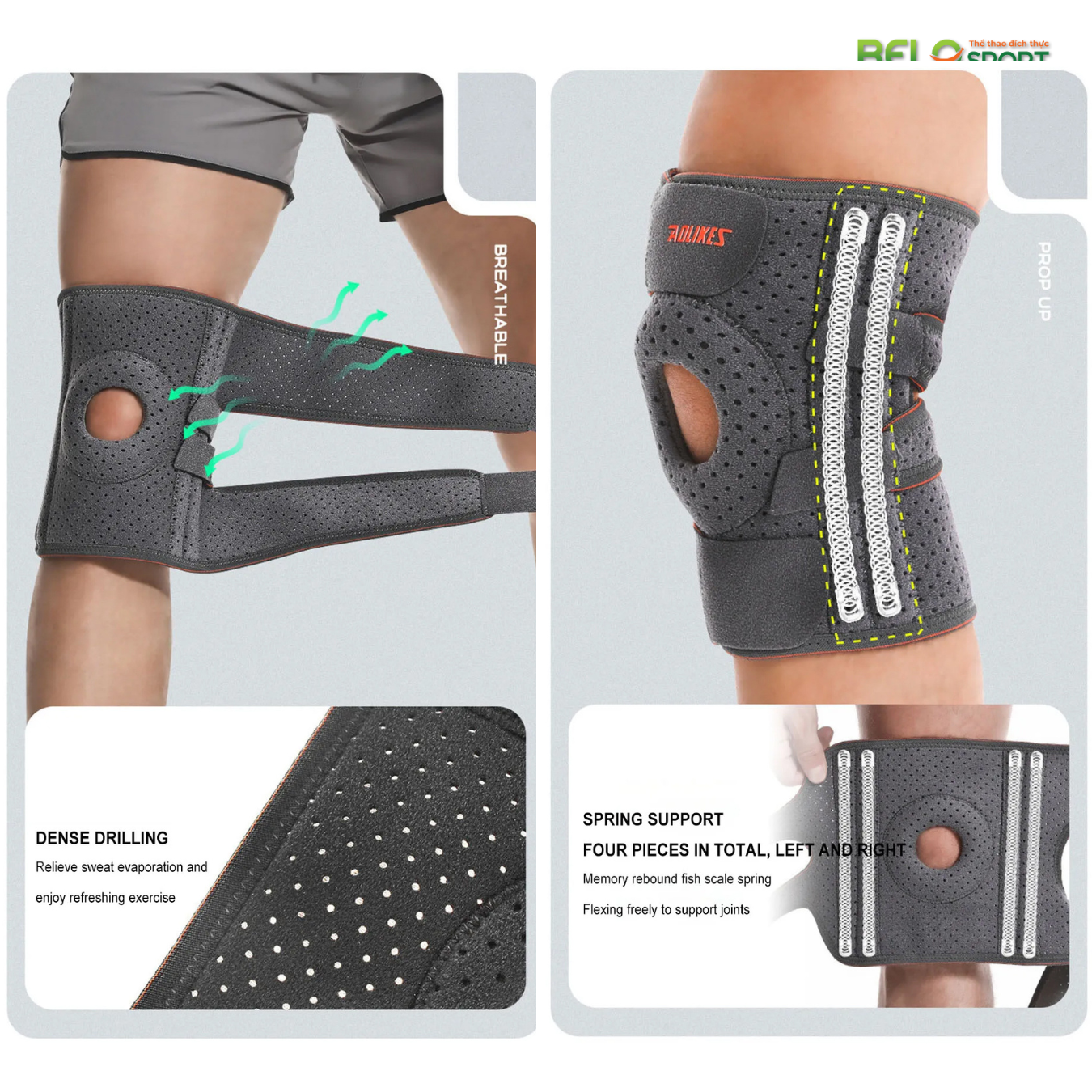 - Tối ưu hỗ trợ khớp: Bốn lò xo linh hoạt giúp uốn cong tự do, hỗ trợ khớp đầu gối một cách hoàn hảo, đảm bảo sự thoải mái và an toàn khi vận động.