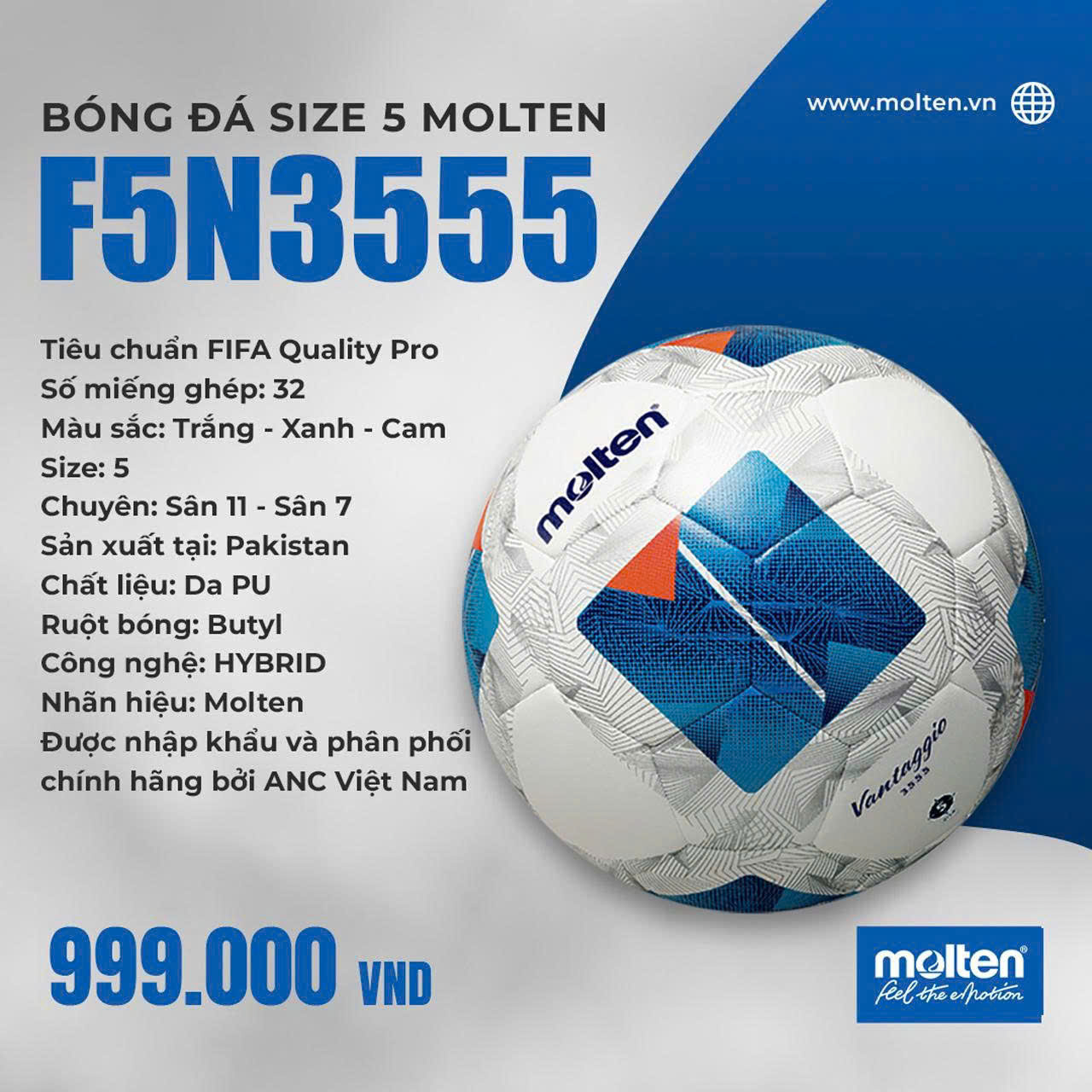 1. Thông số kỹ thuật của Molten F5N3555