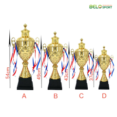 Cúp kim loại mạ vàng không chỉ là phần thưởng mà còn là biểu tượng của sự chiến thắng và thành tựu xứng đáng. Với chất liệu cao cấp, thiết kế sang trọng và khả năng tùy biến cao, đây là lựa chọn hoàn hảo cho mọi giải đấu, sự kiện vinh danh quy mô lớn nhỏ.