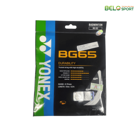 Yonex BG 65 là một trong những dòng dây cước cầu lông bán chạy nhất của Yonex nhờ vào độ bền cực cao, hiệu năng ổn định và giá thành rất hợp lý. Dây có đường kính 0.70 mm, phù hợp với những người chơi phong trào cần một loại dây ít đứt, dễ đánh, công thủ toàn diện.