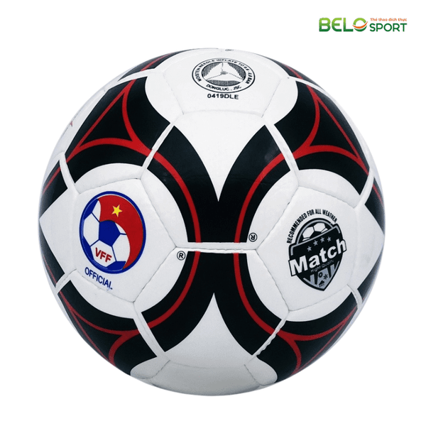 Phần vỏ bóng được trang trí bằng họa tiết hình giọt nước độc đáo, kết hợp ba màu trắng – đen – đỏ nổi bật, mang đậm phong cách thể thao hiện đại. Thiết kế tỉ mỉ giúp bóng không chỉ đẹp mà còn dễ nhận diện khi thi đấu.