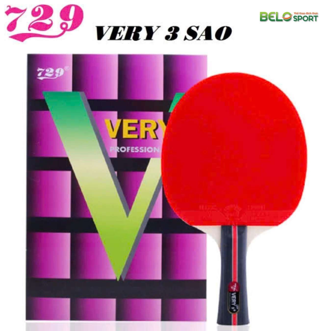 - Vợt bóng bàn 729 – VERY 3 SAO thiết kế cốt vợt bằng gỗ tự nhiên có tính đàn hồi cao kết hợp với mút chuyên dụng được thiết kế đặc biệt;