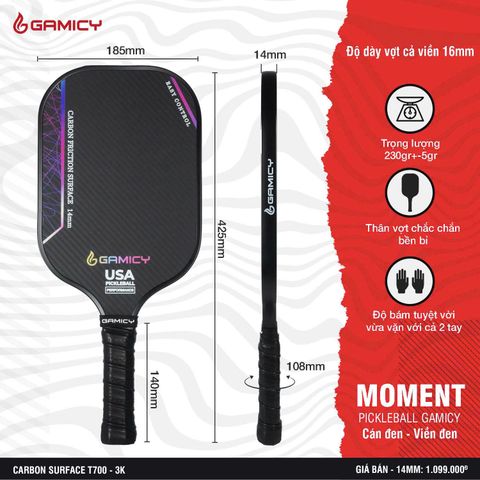Vợt Pickleball Gamicy Moment T700 Vân Carbon 3K – Hiệu Năng Bùng Nổ, Kiểm Soát Vượt Trội